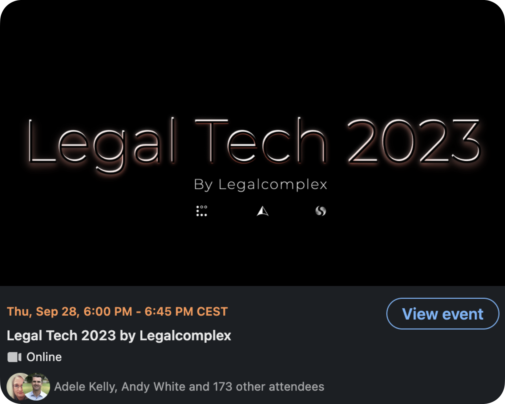[vc_row section_type=”fullwidth-element” heading_color=”primary-1″ section_full_height=”yes” bg_type=”color” header_feature=”yes” footer_feature=”yes” flex_height=”yes” bg_color=”#000000″][vc_column width=”1/6″][/vc_column][vc_column width=”2/3″][crocal_single_image image_type=”image-link” image=”20390″ link=”url:https%3A%2F%2Fwww.linkedin.com%2Fevents%2F7104818205814087680%2Fabout%2F|title:Legal%20Tech%202023%20Event|target:_blank”][crocal_empty_space height_multiplier=”custom” height=”120px”][vc_column_text text_style=”leader-text”]